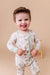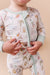 A soft, breathable bamboo zip romper designed for all-day comfort and easy changes, featuring a playful alphabet and animal print.